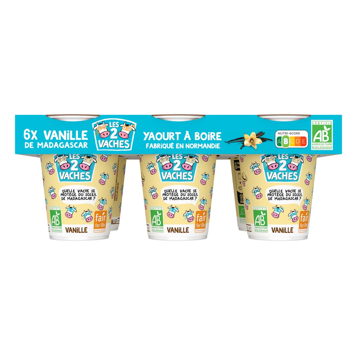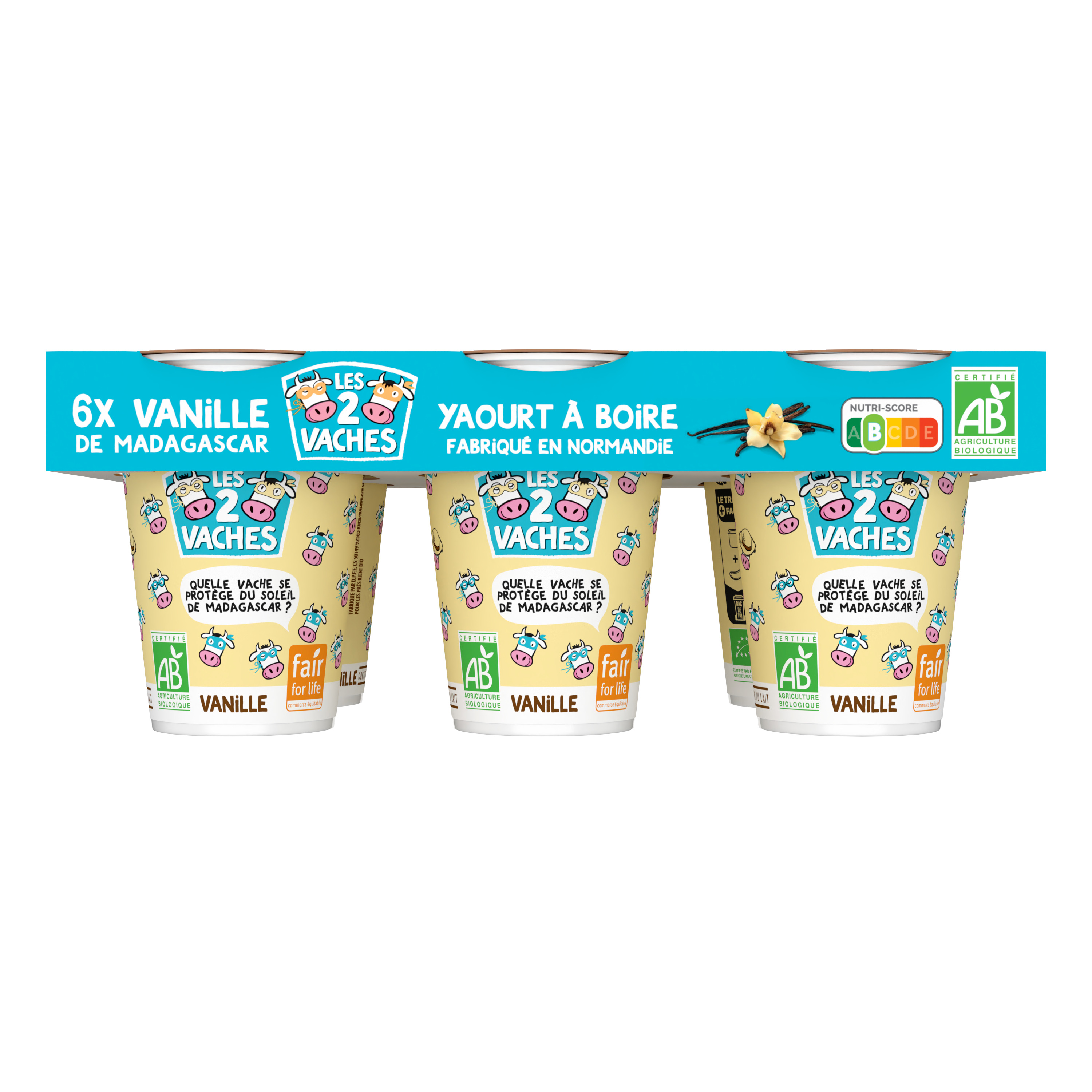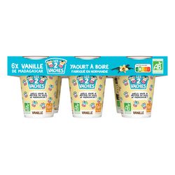 Les 2 vaches Yaourt à boire vanille est fabriqué grâce à du lait bio normand issu du commerce équitable et de l'extrait de vanille bio de Madagascar. Il s'agit d'un yaourt à boire pour les petits et les grands enfants ! Pour déguster ce délicieux yaourt vanille bio rien de plus simple: Secouez, ouvrez et dégustez, un vrai jeu d'enfant ! Les 2 vaches yaourt à boire à la vanille est fabriqué au Molay-Littry (Calvados).