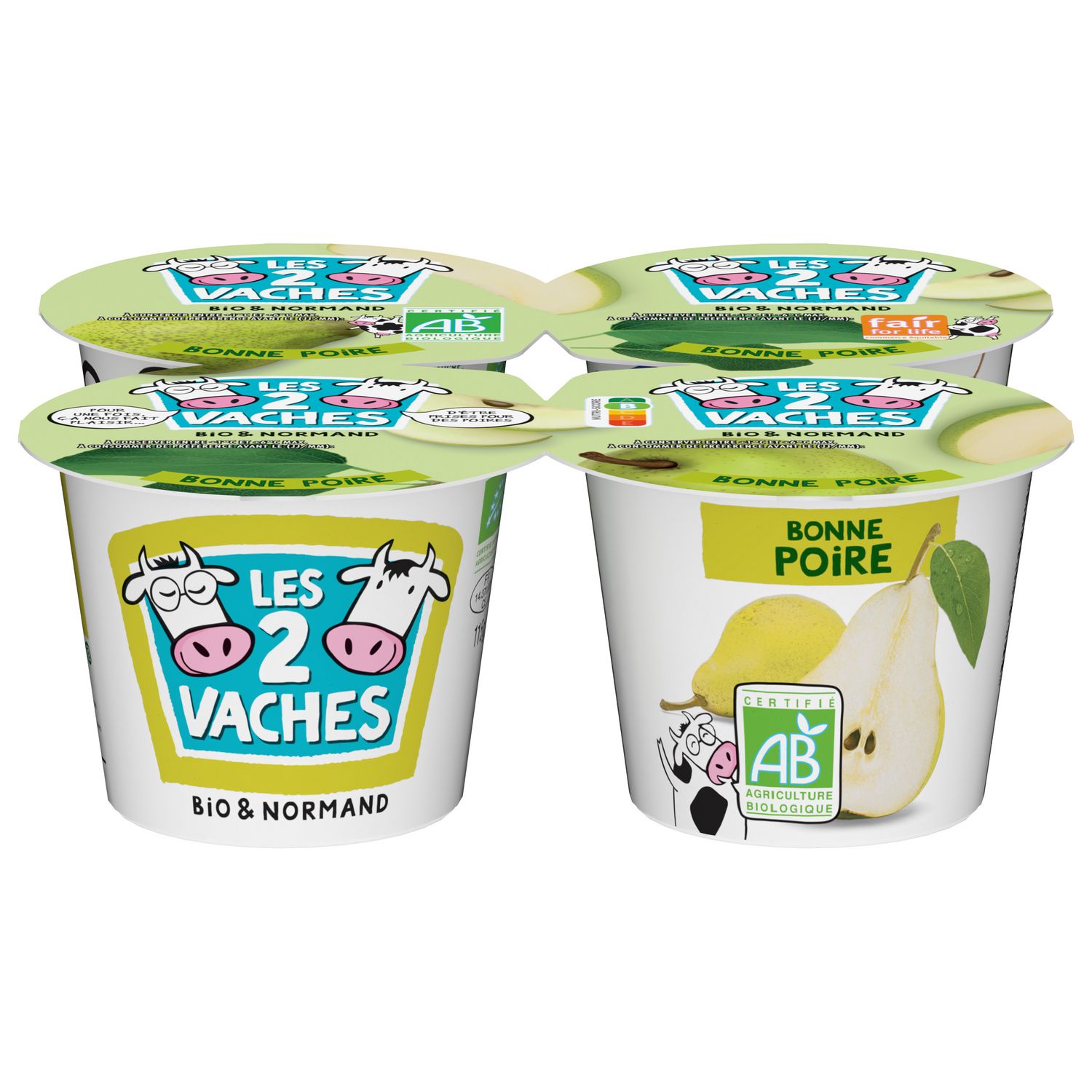 Découvrez le yaourt brassé bio à la poire de Les 2 Vaches ! Confectionné au cœur de la Normandie, dans notre laiterie du Molay-Littry, ce yaourt brassé aux fruits est produit avec de la crème et du lait Normands, 100% bio et certifiés équitables, une pointe de sucre, et des poires bio, françaises et récoltées à la main dans une exploitation familiale installée dans la vallée du Rhône. Ce brassé à la poire est Nutriscore B. Il peut être dégusté au petit-déjeuner comme en dessert, pour une fin de repas gourmande !