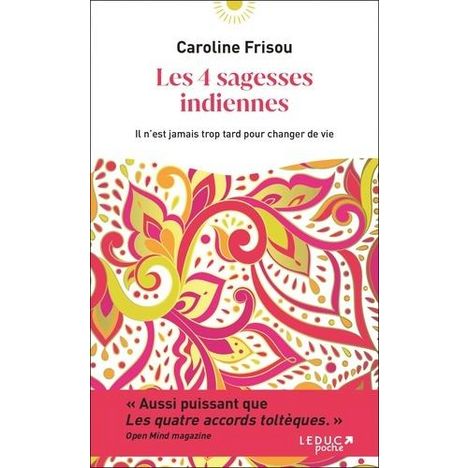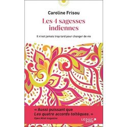 Quelles sont les 4 sagesses indiennes ? Comment peuvent-elles vous aider dans votre vie quotidienne ? Depuis des millénaires en Inde, 4 sagesses sont transmises oralement de génération en génération et aident chacun à vivre en conscience. Derrière leur apparente simplicité se cache en fait un véritable trésor pour celui qui recherche la paix intérieure et l'harmonie : 1- Quiconque vous rencontrez est la bonne personne. 2- Ce qui arrive est l'unique chose qui pouvait arriver. 3- Chaque moment est le bon moment. 4- Ce qui est terminé est terminé. Caroline Frisou décrypte pour vous ces sagesses afin de les laisser infuser dans votre quotidien et les a enrichies de témoignages forts et de rituels pratiques. Voyez la vie différemment grâce à ces 4 sagesses
