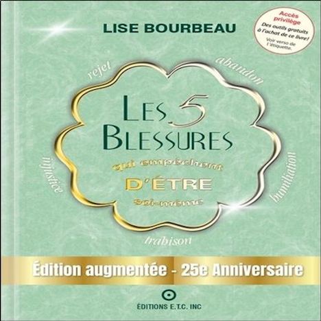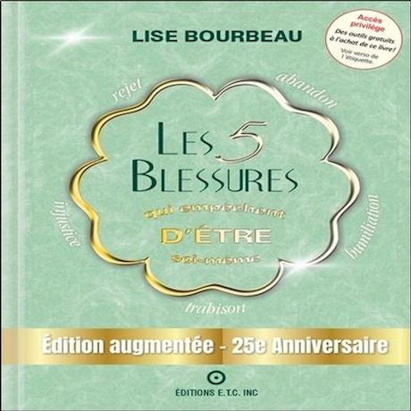 L'auteure est heureuse de vous proposer une édition révisée pour célébrer le vingt-cinquième anniversaire de ce livre, comprenant une mise à jour des caractéristiques de chacune des cinq blessures. Elle a également écrit un huitième chapitre pour présenter ses découvertes depuis la parution de ce livre et inclut quelques photos-souvenirs en couleurs. Les lecteurs seront séduits par cette nouvelle édition qui leur permettra d'observer encore mieux leurs blessures et les masques associés. Ce grand best-seller de Lise Bourbeau, aussi concret que les précédents et dont 3 millions d'exemplaires ont été vendus à ce jour, démontre que tous les problèmes d'ordre physique, émotionnel ou mental proviennent de cinq blessures importantes : le rejet, l'abandon, l'humiliation, la trahison et l'injustice. Grâce à la description très détaillée de ces blessures et des masques que vous avez développés pour ne pas les voir, les sentir et surtout pour ne pas les connaître, vous arriverez à identifier la vraie cause d'un problème précis dans votre vie.