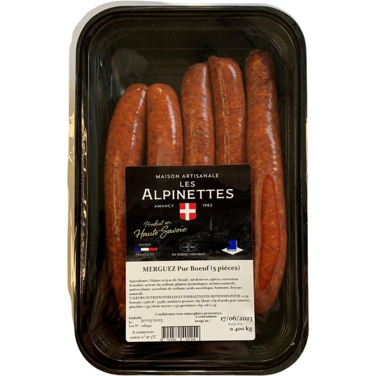 Maigre de bœuf, sel, dextrose, épices, correcteur d'acidité: acétate de sodium (E262), plantes aromatiques, arômes naturels, antioxydants: ascorbate de sodium (E301), acide ascorbique (E300), boyaux naturels, ferments.
