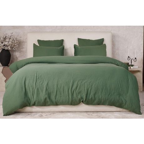 Parure De Couette 3 Pcs 240x220 100% Gaze De Coton Lavé Vert Cèdre