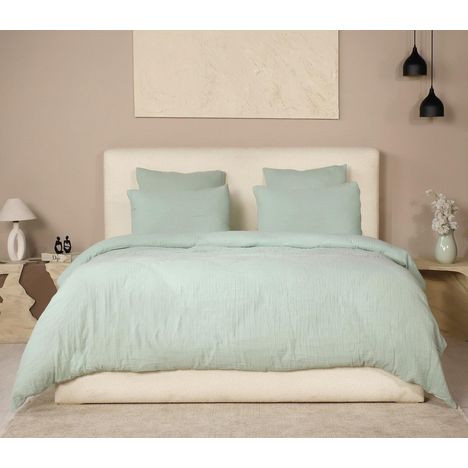 Parure De Couette 3 Pcs 240x220 100% Gaze De Coton Lavé Vert Givrée
