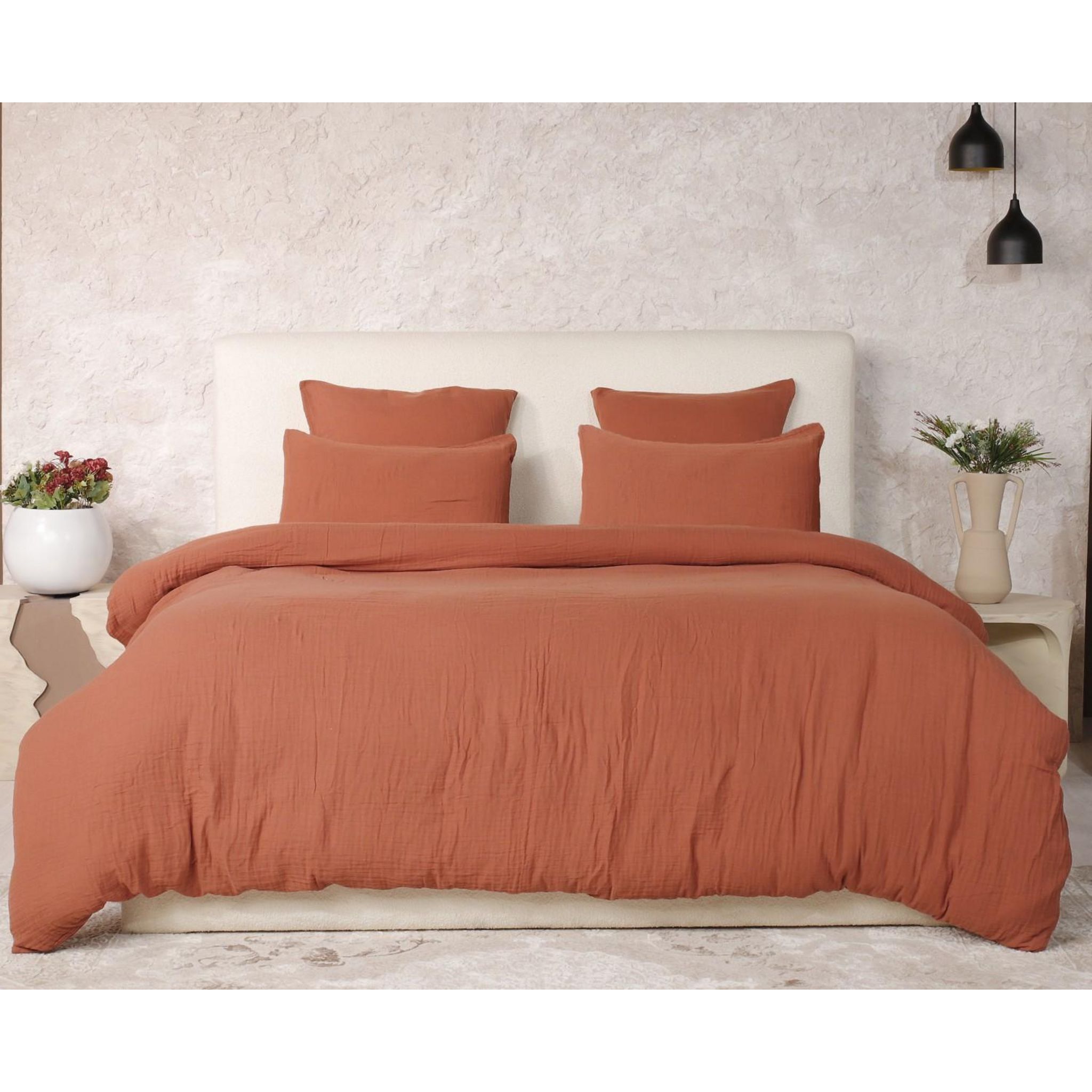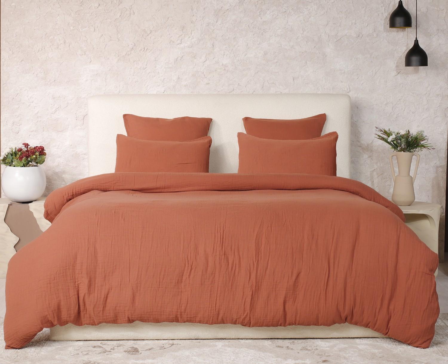 Parure De Couette 3 Pcs 260x240 100% Gaze De Coton Lavé Safran Minéral