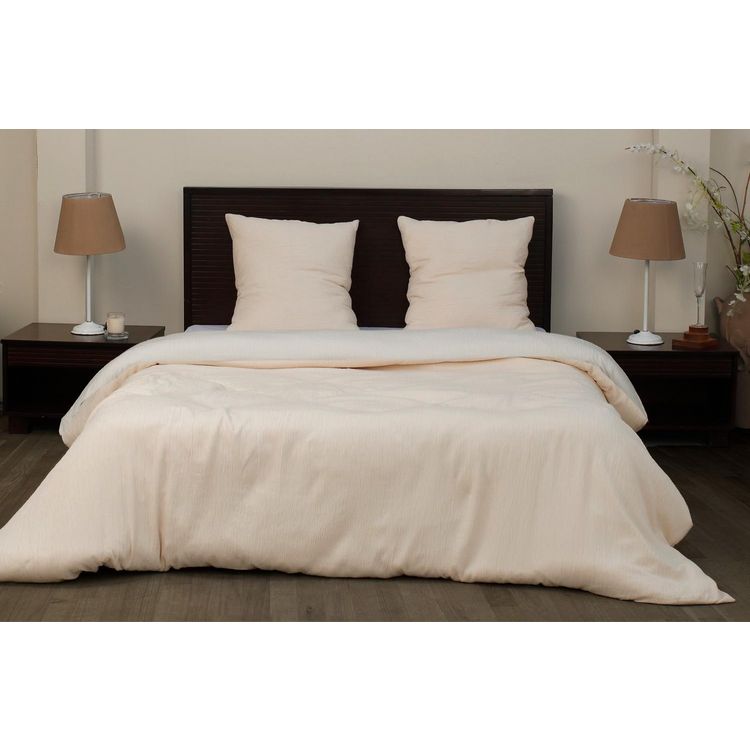 Parure Gaze De Microfibre 260x240cm Bicolore Ecru Naturel + Blanc