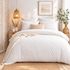 La housse de couette se distingue par un recto en microfibre tuftée 90 g/m², offrant un relief subtil et un toucher agréable, tandis que le verso en microfibre unie 80 g/m² assure une sensation de douceur continue. Les taies d'oreiller 63×63 cm, en 100 % polyester, complètent harmonieusement l'ensemble.