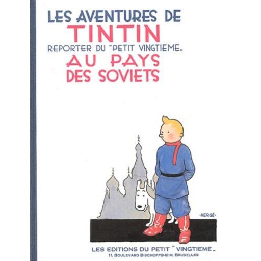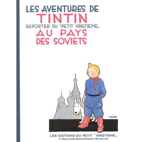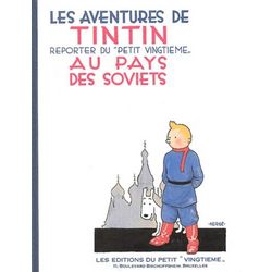Les tintinophiles parlent du Soviets, la première aventure de Tintin, comme les anthropologues parlent de Lucy : avec tendresse, avec passion. Etait-elle séduisante ? A l'époque, sans doute , mais aujourd'hui, après tant d'années ? Qu'importe, cette aventure est celle de la naissance de Tintin : elle n'est rien qu'en cela inestimable. Hergé lui-même (il a 22 ans) ne peut imaginer la destinée fabuleuse de ce héros qu'il créé au pied levé, le 10 janvier 1929, pour une publication en feuilleton hebdomadaire. L'album qui suit dès 1930 sera néanmoins tiré à 10 000 exemplaires, preuve du succès immédiat de la série. Mais il ne sera ni réimprimé ni adapté pour la couleur comme le furent les huit autres albums parus ensuite en noir et blanc. Devenu mythique après la guerre et introuvable, il ne fut plus disponible, hors divers tirages limités aux amateurs, avant sa réédition en 1981 en version Fac-similé.