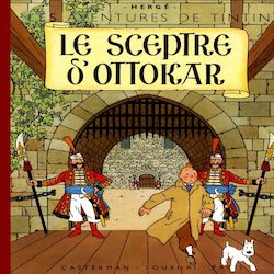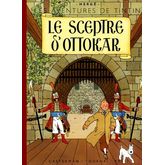 Le sceptre d'Ottokar est l'avant-dernier des albums en noir et blanc et le dernier paru avant guerre. Il baigne d'ailleurs dans une ambiance de menace guerrière que le dictateur Müsstler (Mussolini + Hitler) fait peser sur le paisible royaume de Syldavie. Son roi lutte pour garantir l'indépendance du pays, à l'instar du roi Léopold III de Belgique, petit pays neutre dont la position inconfortable à la fin des années trente s'inspire manifestement Hergé. La version en couleurs qui reprend la précédente sans grands changements(sauf le costume des gardes et le dessin du sceptre) paraît en 1947. C'est cette édition qui est reproduite ici avec la titraille d'époque, le titre intérieur en rouge, le quatrième plat B1 avec le pull deux couleurs bien connu des collectionneurs... Une foule de petits détails ont été, comme chaque fois restitués fidèlement. C'est ainsi que réapparaissent les plaques de voiture, mystérieusement disparues dans le courant des années 90. Une pièce d'uniforme oubliée par Hergé dans l'édition originale est oubliée aussi dans ce fac-similé. Laissons aux lecteurs perspicaces le soin de l'identifier. Pas facile !