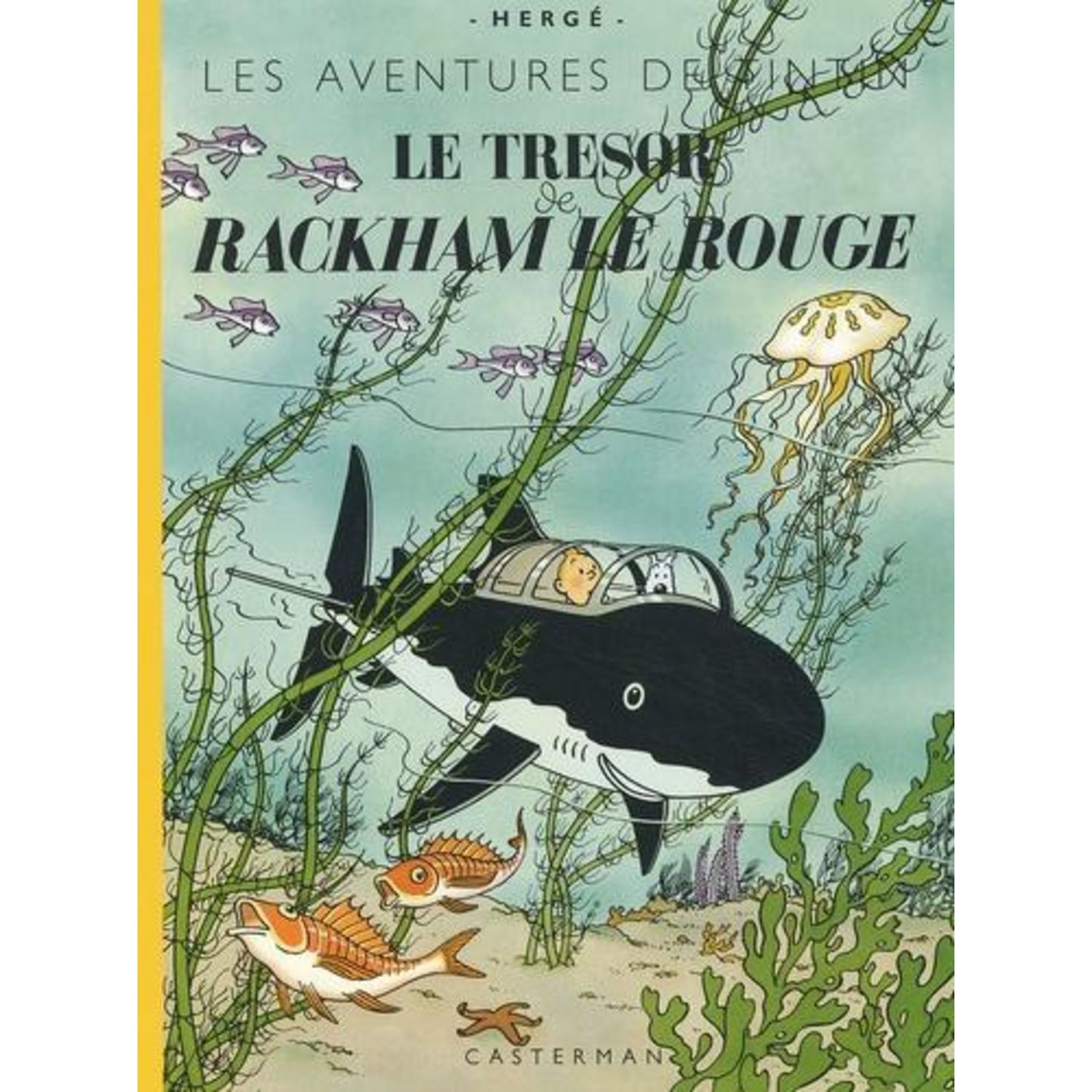 Le trésor de Rackam le Rouge fait suite au Secret de La Licorne, pré-publié comme lui dans la presse quotidienne, en noir et blanc. Comme lui également, il parait d'emblée en couleurs, sur le modèle inauguré par L'étoile mystérieuse : 62 planches, gardes en réserve bleue, couverture à fonds perdus , dos toilé pélior , impression offset sur papier de bonne tenue. Cette présentation restera d'actualité jusque dans les années soixante et donc pendant plus de vingt ans. La première édition, datée de 1944, se reconnaît à la liste de onze titres, déjà parus et à paraître , en quatrième de couverture. Les deux albums de La Licorne marquent la consécration du capitaine Haddock comme compagnon indéfectible de Tintin. Le château de Moulinsart devient leur résidence et celle du professeur Tournesol, dernier né des personnages emblématiques d'Hergé. Les deux Dupondt confirment leur rôle de gaffeurs sympathiques, de plus en plus intégrés à la Famille Tintin maintenant constituée. La publication des fac-similés se poursuit désormais au rythme de trois par an.