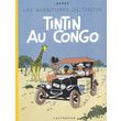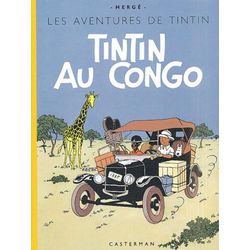 Congo, Amérique et Cigares furent les seuls albums à être redessinés pour l'édition en couleurs. Ces trois aventures méritaient de profonds remaniements pour se retrouver, au milieu des années quarante, au niveau de qualité graphique et narrative atteint par Hergé à ce moment. Tintin au Congo fut toujours de très bonne vente. On se devait de le sortir rapidement en version couleurs , malgré l'important travail de remaniement jugé nécessaire : quoiqu'à plus de dix ans des indépendances africaines, il fallait adapter l'aventure à l'évolution des sensibilités vis à vis de la colonisation. La nouvelle version de Tintin au Congo sortit en juillet 1946, en même temps que celle de Tintin en Amérique, bientôt suivie par les éditions en couleurs du Lotus et du Sceptre(1947). Ces quatre éditions originales en couleurs sortirent en version dite B1 (référence du BDM) , soit avec le quatrième plat caractérisé par une nouvelle liste des parutions (avec pour dernier titre Le sceptre d'Ottokar) et le pull à deux couleurs du Capitaine. Le titre de couverture était en réserve blanche sur ciel bleu. il fut remplacé, dès 1948, par un lettrage en noir seul, ce qui permettait l'impression des titres traduits sans modifier d'autres couleurs que le noir. Comme dans beaucoup d'éditions originales, le titre intérieur était imprimé en couleurs, ici en bleu. Là aussi, les impératifs techniques le firent repasser rapidement en noir seul. Il existe des éditions originales à dos rouge, mais c`est le dos jaune, abandonné ensuite pour ce titre, qui caractérise le plus cette première édition et donc aussi son fac-similé.