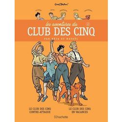 Le club des cinq contre-attaque. Cet été, tout va mal. La mère de Claude est malade et c'est l'antipathique Mme Eliot qui est en charge de la maison. Elle mène la vie dure à François, Claude, Mick, Annie et Dagobert, qui décident de s'enfuir en bateau pour se réfugier dans le château de Kermach. Mais, bien vite, ils s'aperçoivent qu'ils ne sont pas seuls... Le club des cinq en vacances. Les vacances de Pâques commencent mal : un arbre s'est effondré sur la Villa des Mouettes, François, Claude, Mick, Annie et Dagobert doivent donc emménager dans le manoir qui surplombe le sinistre Rocher Maudit, sous lequel se trame un bien étrange complot...