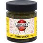 Ingrédients : Ingrédients: huiles végétales 76,6% (colza et beurre de sal), sel, thym 3,3%, écorce de citron 2,6%, arôme naturel de thym, acidifiant : acide citrique E330, persil, poivre blanc, arôme naturel de citron, curcuma.