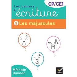 Le cahier d'écriture 3 de la méthode Dumont, une nouvelle édition en couleurs ! Un cahier dédié à la copie et la réflexion sur l'usage des majuscules pour les élèves de CP et CE1. L'objectif de ce cahier est non seulement l'acquisition d'un geste souple et vif dans le tracé des majuscules mais aussi la maitrise de leur usage. Il commence donc par un rapide tour d'horizon de leur application. Ensuite, chaque page comporte une description de la lettre et cinq exercices : - Observe la lettre décorée. - Repasse vivement au crayon plusieurs fois de suite les lettres tracées en bleu. La lettre est dans ses deux versions, isolée et liée, si les deux existent. - Recopie la lettre. La lettre est dans ses deux versions, isolée et liée, si les deux existent. - Recopie les phrases sans oublier les majuscules. - Recopie en mettant une majuscule quand il le faut.