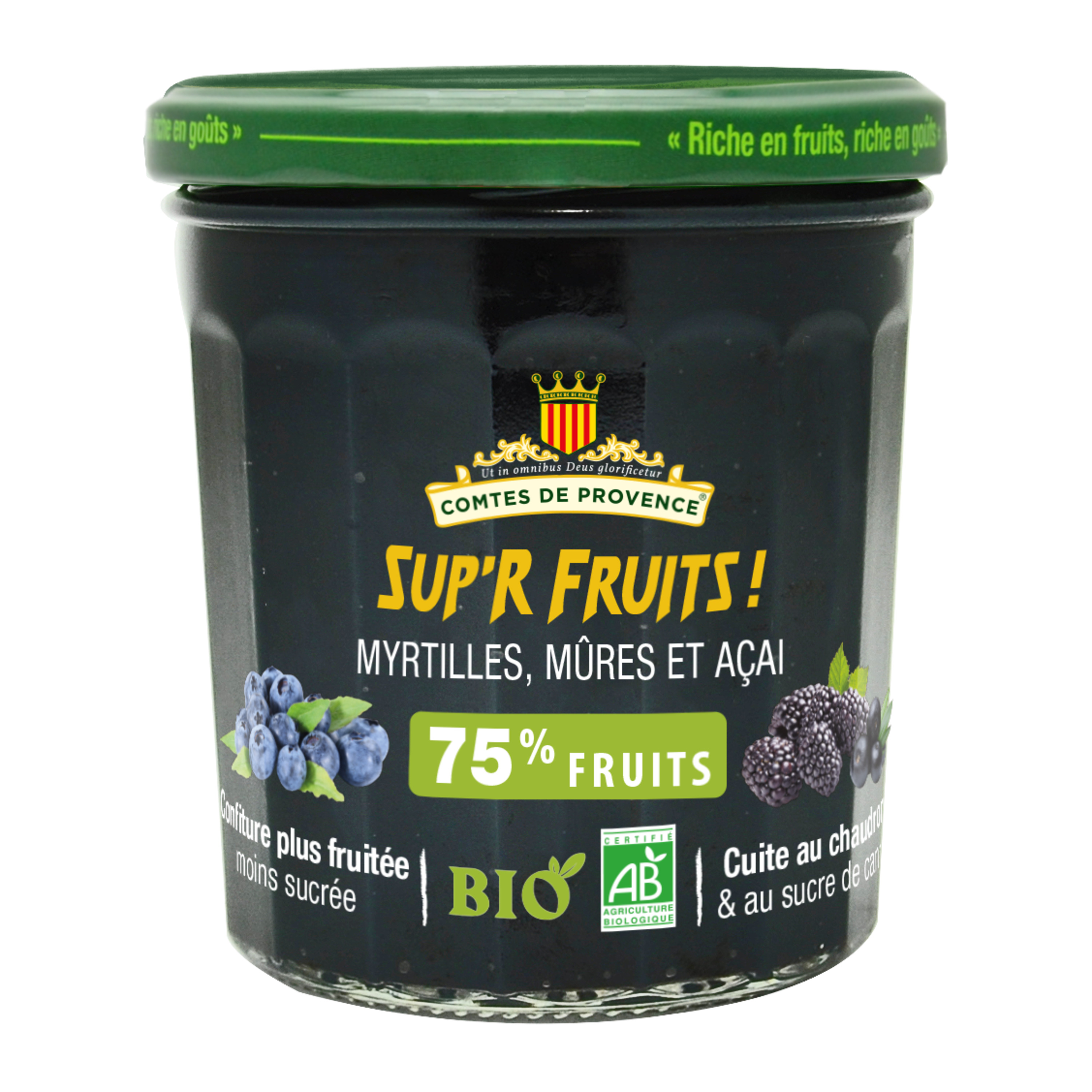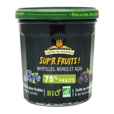 Superfruits Myrtilles Mures Acais bio allégée en sucres, cuite au chaudron