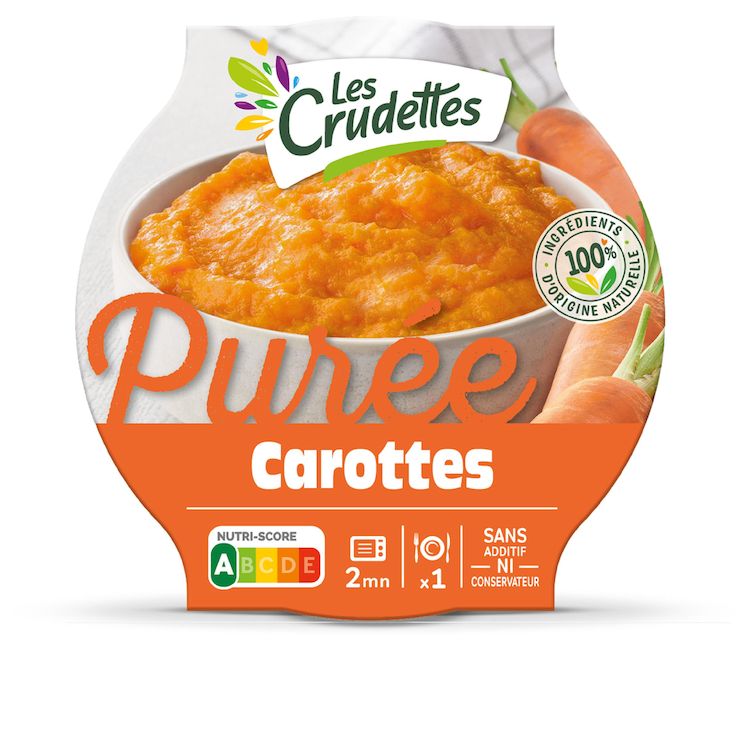 Ingrédients : Carottes 83%, lait, beurre (contient du lait), amidon de maïs, sel, poivre.