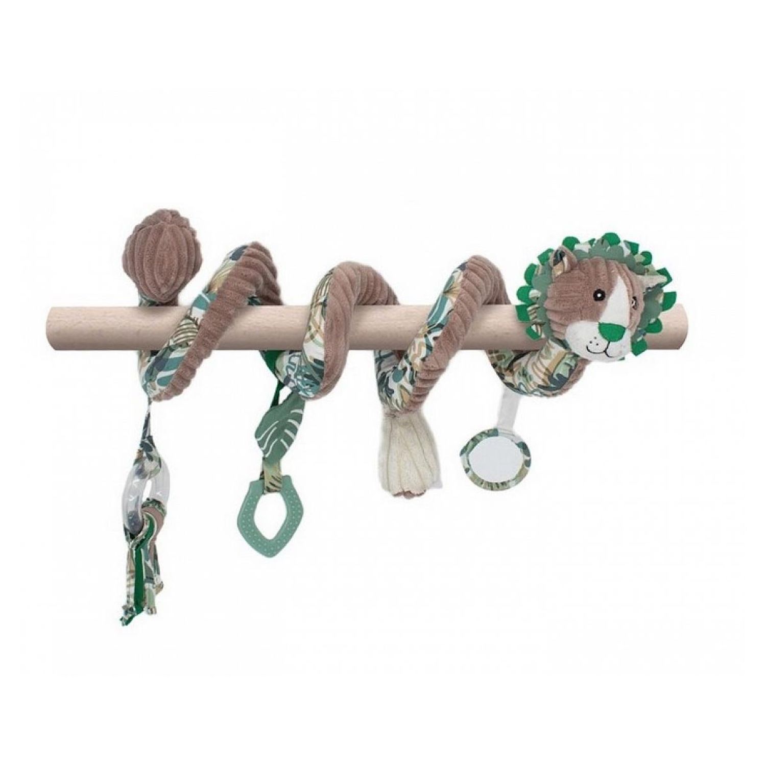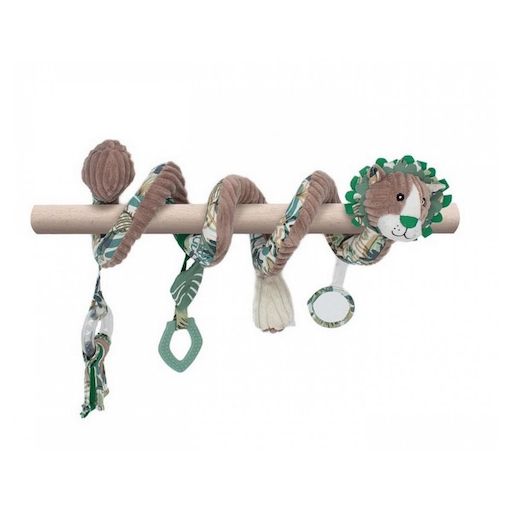 Le jouet d'éveil à accrocher partout !. A l'effigie du lion Jélékros, cette spirale d'activité est un jouet d'éveil facile à accrocher partout ! Bébé s'amusera tout en s'éveillant grâce à ses nombreuses activités : du papier bruissant, un pouet-pouet, un petit miroir, des n?uds, et un anneau de dent