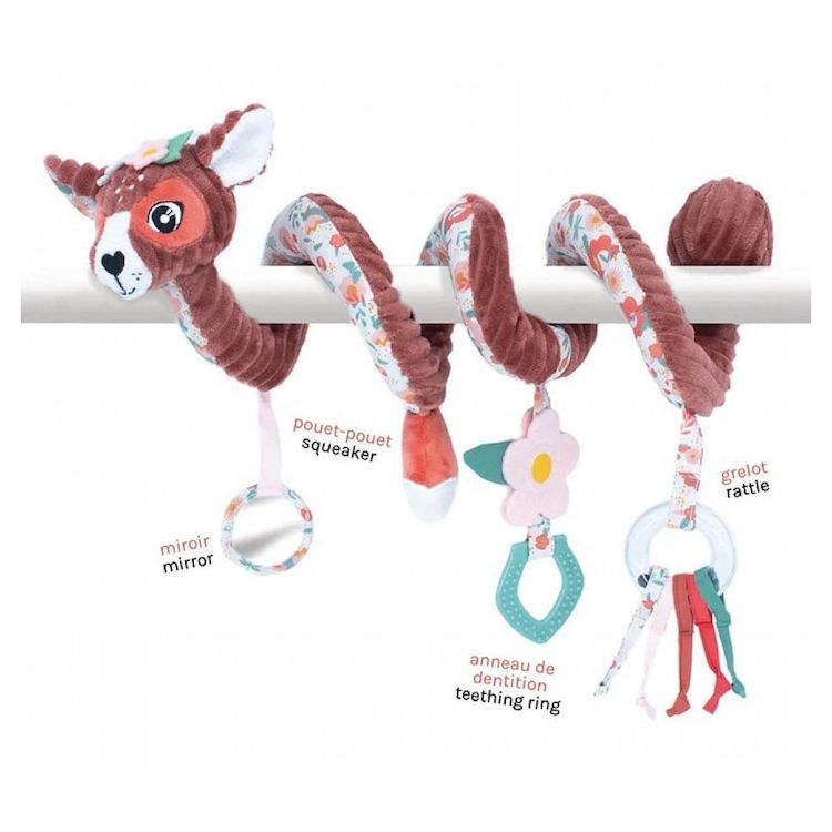 Une spirale d'activité rigolote dotée de cinq jouets sensoriels pour s'éveiller en s'amusant !