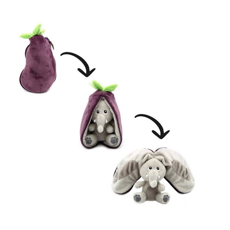 Dis, tu savais que les éléphants naissaient dans les aubergines?. Enchanté! Je suis Velvet, l'éléphant fan d'opérette qui joue de la trompette. Véritable troubadour lorsque s'ouvre le rideau de velours. Si tu aimes ma saynète, offre-moi des cacahuètes! - Flipetz, imaginer pour grandir - Plus que des peluches, les Flipetz sont le point de départ de milliers d'histoires originales? qui invitent les petits comme les plus grands à jouer, inventer, explorer pour s'éveiller et grandir. La peluche aubergine se dézippe et devient un éléphant.