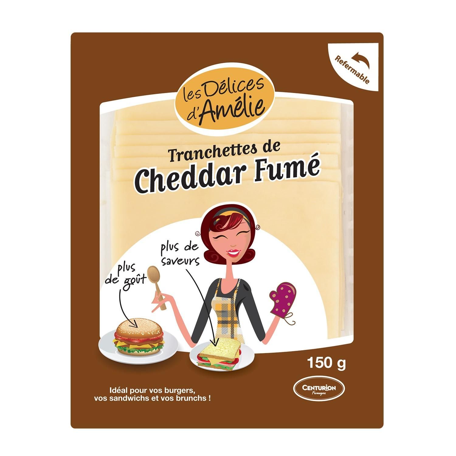 100% cheddar fumé, les tranchettes de cheddar “Les Délices d'Amélie” sont naturelles et goûteuses. Idéal pour les burgers, les croques monsieur et autres sandwichs chauds ou froids !