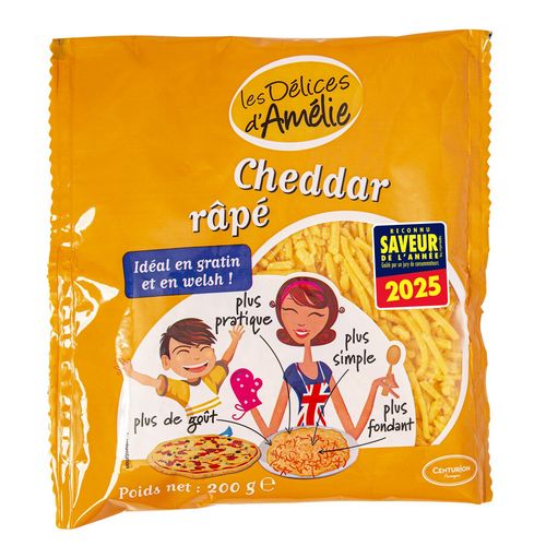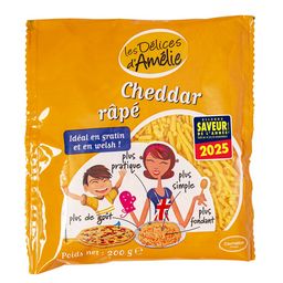 râpé de cheddar 200 gr, un produit simple et pratique pour une cuise facile de tous les jours, idéal pour vos Welsh, gratin...