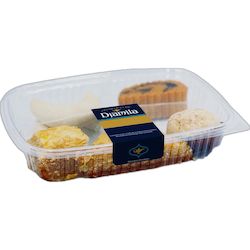 semoule de BLÉ, eau, huile de tournesol, pâte de datte 7,8%, margarine (graisse de palme, huile de colza, eau, sel, jus de citron), farine de BLÉ, stabilisant : E420, arôme vanille (dont BLÉ), sucre, poudres à lever : (E450, E500), amidon de BLÉ, sel, cannelle, conservateurs : (E200, E282). Frit dans de l'huile de tournesol. Trempé dans du sirop (sucre, eau, sirop de glucose, jus de citron). Finition : graines de SÉSAME.
