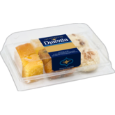 Ingrédients : semoule de BLÉ, sucre, eau, levure fraîche, margarine (graisse de palme, huile de colza, eau, sel, jus de citron), poudres à lever : (E450, E500), amidon de BLÉ, sucre vanillé (sucre, arômes naturels, amidon de BLÉ), conservateur : E200, arôme. Trempé dans du sirop (sucre, sirop de glucose, eau, arôme, jus de citron). semoule de BLÉ, eau, huile de colza, pâte de datte 9,9%, farine de BLÉ, margarine (graisse de palme, huile de colza, eau, sel, jus de citron), stabilisant : E420, arôme vanille (dont BLÉ), sucre, poudres à lever : (E450, E500), amidon de BLÉ, sel, conservateurs : (E200, E282), cannelle. Frit dans de l'huile de tournesol. Trempé dans du sirop (sucre, eau, sirop de glucose, jus de citron). Présence possible de noyau de datte. semoule de BLÉ, eau, huile de colza, pâte de datte 5,6%, farine de BLÉ, margarine (graisse de palme, huile de colza, eau, sel, jus de citron), stabilisant : E420, arôme vanille (dont BLÉ), sucre, poudres à lever : (E450, E500), amidon de BLÉ, cannelle, sel, conservateur : E200. Frit dans de l'huile de tournesol. Trempé dans du sirop (sucre, eau, sirop de glucose, jus de citron). sucre, eau, amidon de BLÉ, arômes, colorants : (E141, E163), acidifiant : E330. farine de BLÉ, sucre, huile de colza, cannelle 0,3%.