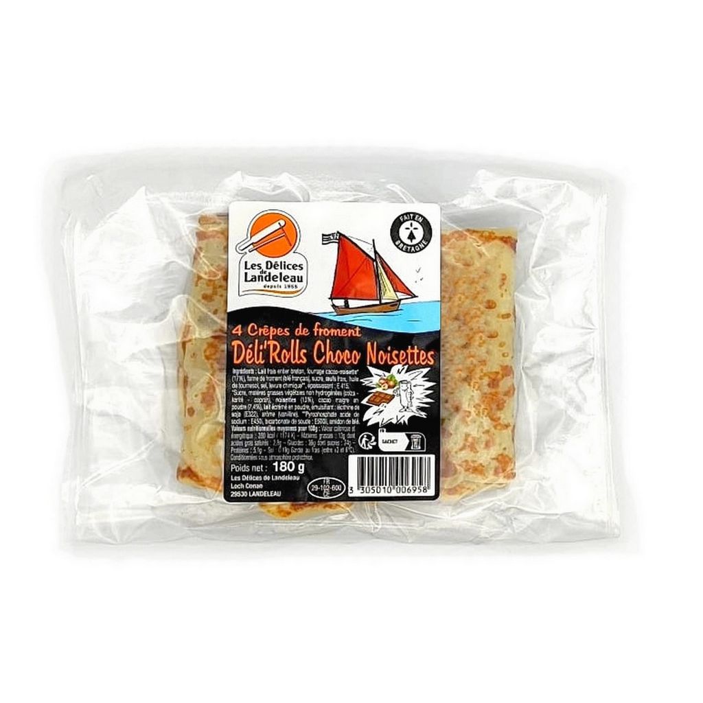 Fabriquées en Bretagne dans la crêperie familiale Les Délices de Landeleau, ces crêpes fourrées chocolat-noisettes vous accompagnes partout pour vos pauses gourmandes.