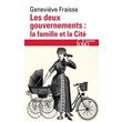 Tout a commencé avec le Contrat social, lorsque, refusant l'analogie entre famille et État, Rousseau pose la dissociation entre domestique et politique, entre la famille et la Cité. Cette séparation des sphères est avant tout une séparation des gouvernements - gouvernement domestique et gouvernement politique. Elle signe la fin d'une comparaison quant à l'exercice du pouvoir. Mais que s'est-il passé, pour les femmes, dès lors que la société civile et politique a été disjointe de la société domestique ? Qui a pensé, parmi les théoriciens du pouvoir, la société domestique ? Plus que jamais, une femme est plusieurs êtres à la fois - mère, fille, sur , épouse, amante, fille majeure , travailleuse, ménagère, etc. Tout le débat sur la citoyenneté se déploie en étoile à partir des statuts et des rôles de la femme contemporaine. La citoyenneté des femmes n'est pas une construction abstraite comme ce fût le cas pour les hommes , elle s'est conquise concrètement, à partir des déterminations réelles. Aussi l'enjeu est-il désormais de penser ensemble les deux gouvernements, la parité domestique et la parité politique, et de trouver une articulation nouvelle, par-delà toute conciliation ou réconciliation , pour la double journée des femmes, qui serait aussi celle des hommes.