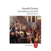 Les dieux ont soif : quand il choisit pour titre ce mot de Camille Desmoulins, Anatole France ne veut nullement rejeter sur une fatalité tragique les atrocités de la Terreur. Ce texte admirable décrit l'horreur du fanatisme, l'obscurantisme gagnant les Lumières elles-mêmes, la barbarie prenant le masque du progrès. En 1912, ce livre du patriarche de la Gauche française qui dénonçait les excès de la Révolution fut accueilli comme un paradoxe. Aujourd'hui, cette représentation alarmée de l'histoire se lit comme une lucide préface à l'horrible XXe siècle, un avertissement contre l'ignorance et la peur qui engendrent la bêtise, la grande tueuse.