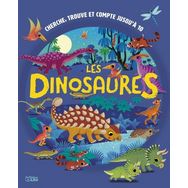 1 diplodocus, 2 allosaures, 3 stégosaures... Amuse-toi à chercher et compter jusqu'à 10 dinosaures ou petits éléments cachés dans de grandes scènes.