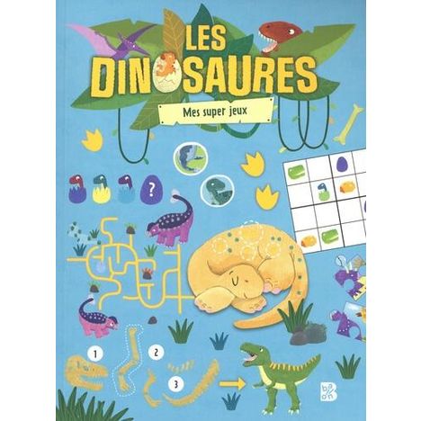 Es-tu un grand fan de dinosaures ? Alors, ce grand livre de jeux est parfait pour toi ! Il est rempli de jeux amusants, comme des labyrinthes, des coloriages, ¡f des sudokus, des puzzles et bien d'autres jeux encore. Bon amusement !