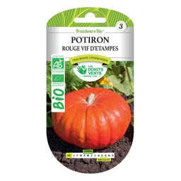 Produit: potiron rouge vif d'Étampes Univers: Entretien et soin du jardin Utilisation: graines pour semis Issue de l'agriculture biologique Conditionnement: graines Semis: avril à juin Récole: septembre à octobre Marque: Les Doigts Verts