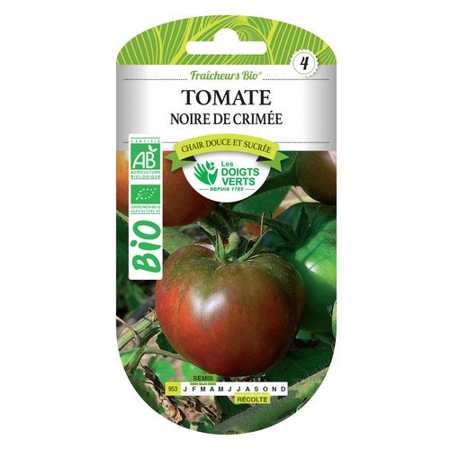 Produit: tomate noire de Crimée Univers: Entretien et soin du jardin Utilisation: graines pour semis Issue de l'agriculture biologique Conditionnement: graines Semis: février à avril Récolte: juillet à octobre Marque: Les Doigts Verts