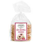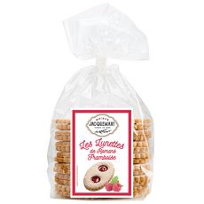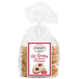 Ingrédients : Farine de blé, sucre, sirop de glucose-fructose, oeufs, huiles végétales (coprah, colza), beurre concentré, purée de framboise 5%, sirop de sucre inverti, arômes, gélifiant : pectines, acidifiant : acide citrique, correcteur d’acidité : citrate de sodium, poudre à lever : carbonates de sodium.