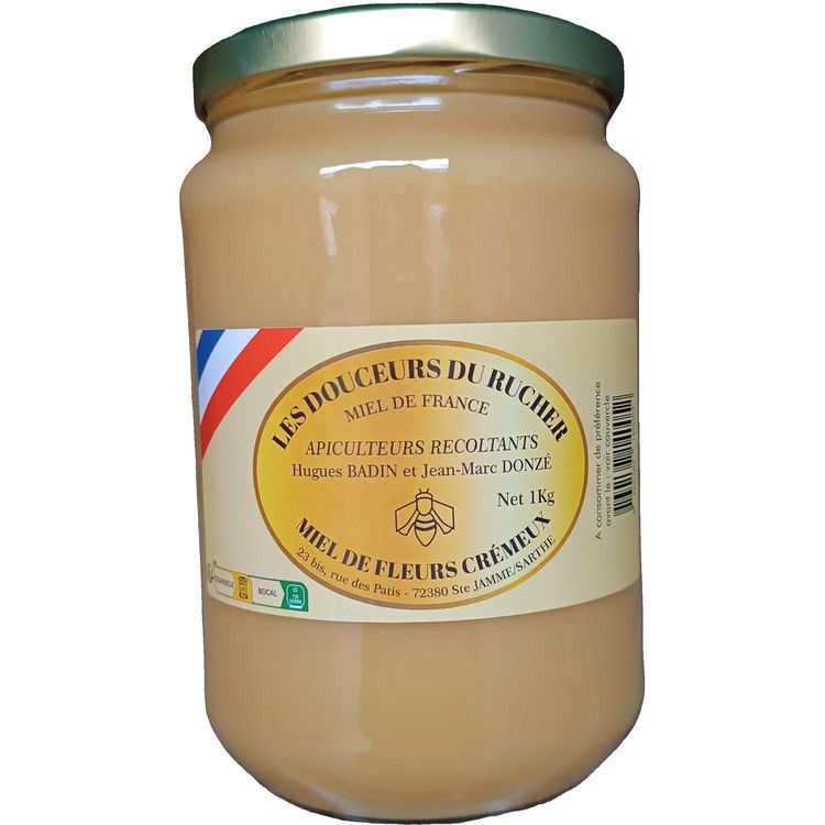 Miel de fleurs récoltés au cour de l'été et brassé pour avoir une texture cremeuse