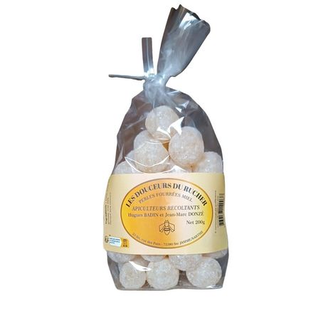 Bonbon boule avec un cœur coulant au miel, fabriqué avec notre miel de fleur par un partenaire confiseur