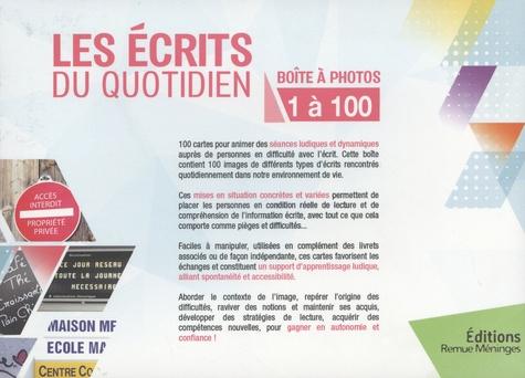 100 cartes pour animer des séances ludiques et dynamiques auprès de personnes en difficulté avec l'écrit. Cette boite contient 100 images de différents types d'écrits rencontrés quotidiennement dans notre environnement de vie. Ces mises en situation concrètes et variée permettent de placer les personnes en condition réelle de lecture et de compréhension de l'information écrite, avec tout ce que cela comporte comme pièges et difficultés... Faciles à manipuler, utilisées en complément des livrets associés ou de façon indépendante, ces cartes favorisent les échanges et constituent un support d'apprentissage ludique, alliant spontanéité et accessibilité. Aborder le contexte de l'image, repérer l'origine des difficultés, raviver des notions et maintenir ses acquis, développer des stratégies de lecture, acquérir des compétences nouvelles, pour gagner en autonomie et confiance !