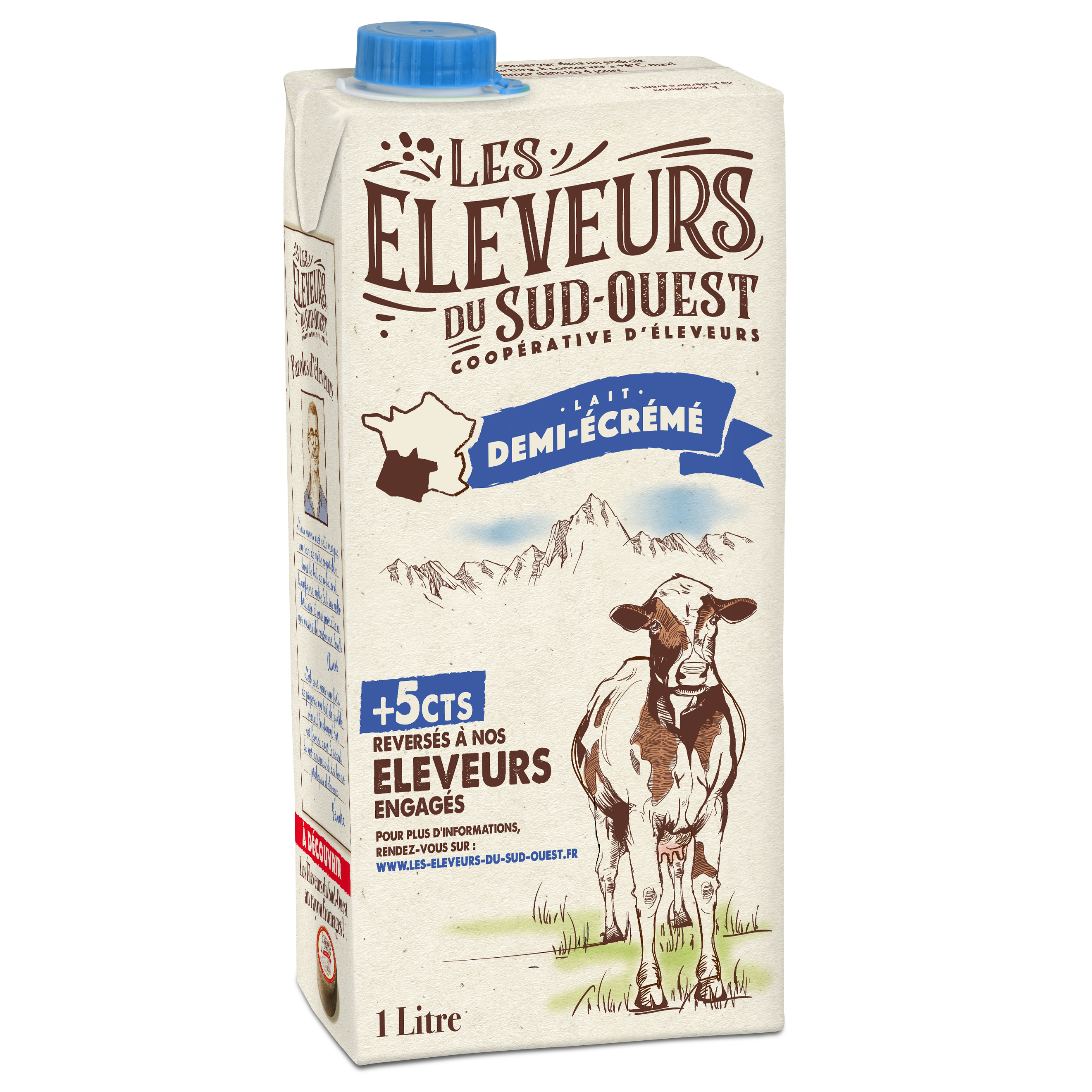 Les Eleveurs du Sud-Ouest est une initiative locale qui valorise le lait et les éleveurs de la région. C'est un lait de coopérative, 100% français. Pour chaque achat, 5cts par litre sont reversés aux éleveurs engagés dans la démarche, alors n'hésitez plus et contribuez à soutenir la filière laitière du Sud-Ouest.