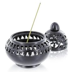 Un superbe encensoir en pierre tournée, taillé à la main, aux entrelacements travaillés et aux courbes gracieuses. Il peut être utilisé ouvert ou fermé et sera un magnifique objet de décoration dans un intérieur altique ou design ! Vous pourrez y glisser vos résines, cônes d'encens, encens Indien et Feng shui, bâtonnets d'encens tibétains et japonais. Conseils d'utilisation : Placer du sable dans le diffuseur Venise. Pour les résines : Allumer un charbon, puis placer quelques grains de résines dessus. Vous pouvez replacer le couvercle de votre diffuseur Venise ! La fumée se dégagera par la dentelle gravée. Pour les cônes : Allumer un cône d'encens placé sur le sable. Vous pouvez replacer le couvercle. Pour les bâtonnets : Retirer le couvercle puis planter le bâtonnet dans le sable. Vous pouvez allumer le bâtonnet. Histoire de ce porte-encens : Ce diffuseur rappelle les détails architecturaux Vénitiens. La pierre en dentelle ciselée fait un clin d'œil aux arcades chargées de détails du style Gothique Fleuri. Pays d'origine : Ce diffuseur est fabriqué artisanalement en Inde, à la main. Chaque détail est travaillé minutieusement par les artisans au savoir-faire séculaire. Dimensions : Diamètre 10 cm Hauteur sans couvercle 6.5 cm Hauteur avec couvercle 13 cm Diamètre du couvercle 7.2 cm.