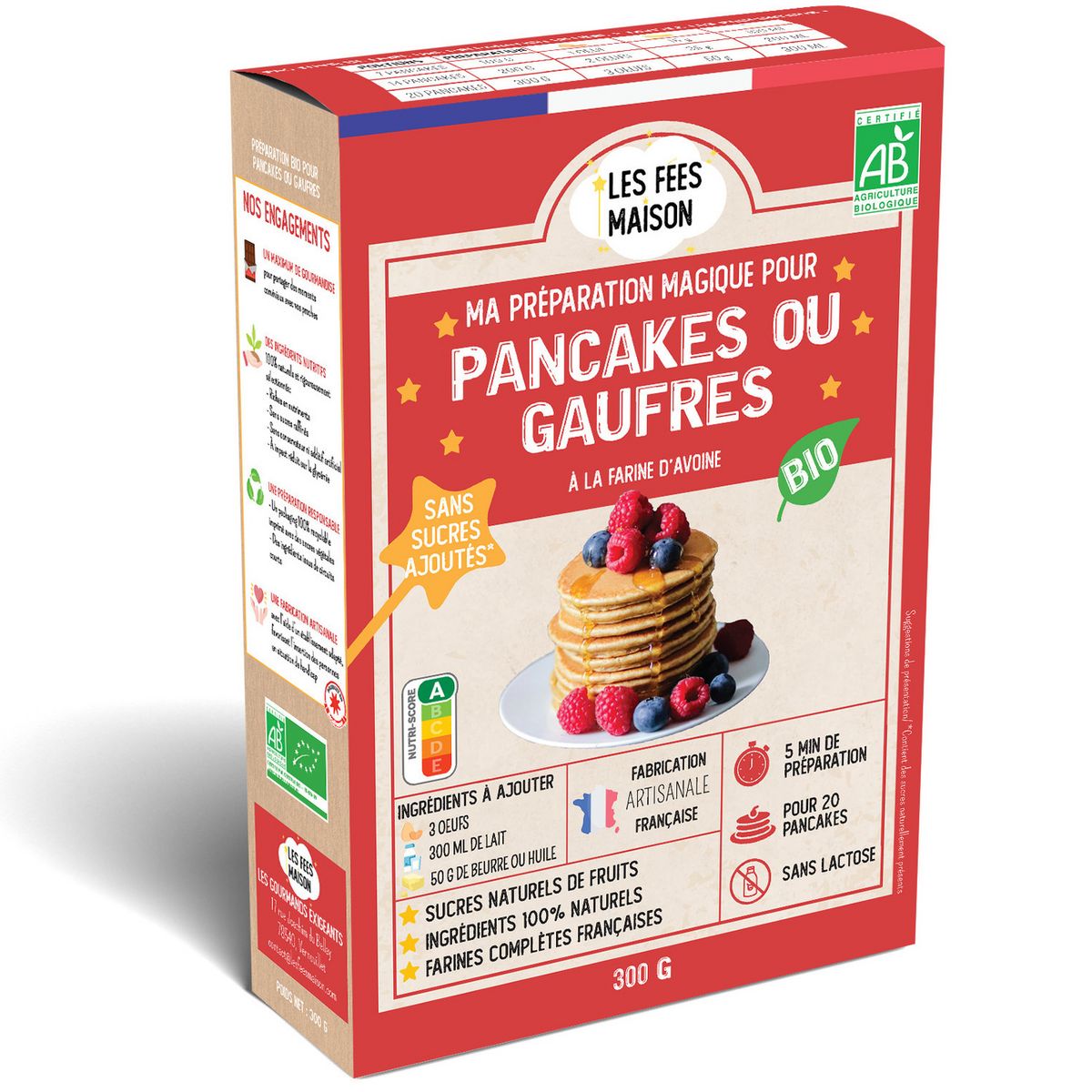 Très bon score sur les appli quand on scanne le produit. J’ai choisi de faire des gaufres avec du lait végétal, c’était très bon. J’ai ajouté des pépites de chocolat. La pâte est bien épaisse, ça doit être très bien aussi pour les pancakes, j’essaierai !