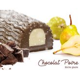 Une bûche glacée sobre par sa forme et franche par ses saveurs avec un chocolat très goûteux et un sorbet poire pas trop sucré au bon goût de fruit. Elle a fait l'unanimité.