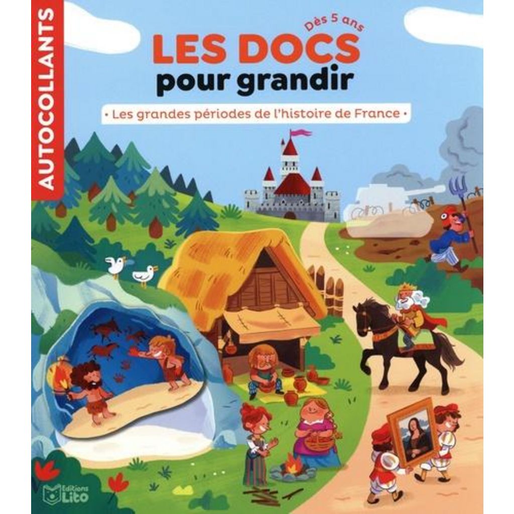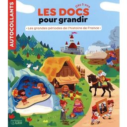 Dans ce documentaire en autocollants, l'enfant découvre les grandes périodes de l'histoire de France. Au fil des pages, il explore huit thématiques (les premiers villages, au temps des châteaux forts, les guerres mondiales...) et découvre le vocabulaire associé (un homme de Cro-Magnon, un chevalier, un poilu...), dont il collera les images. Un doc en autocollants passionnant et amusant !