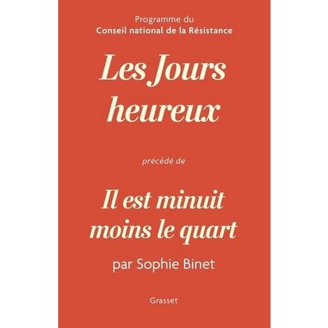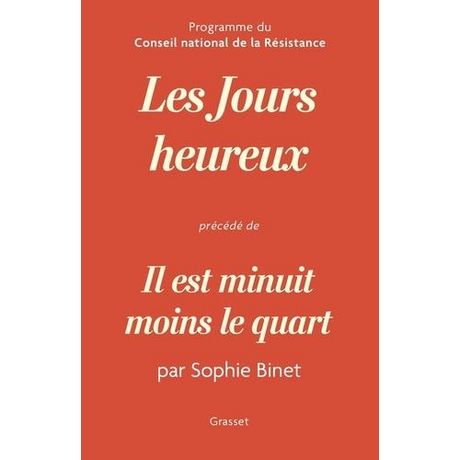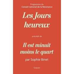 Nous sommes à la fin d'un cycle, à un instant crucial qui exige un sursaut. Il nous faut changer de braquet pour empêcher les catastrophes annoncées d'advenir. Et en ces temps de crise, l'histoire peut nous aider. Le programme du Conseil national de la Résistance, publié clandestinement en 1944, constitue une formidable source d'inspiration , Sophie Binet, secrétaire générale de la CGT. Il y a quatre-vingts ans, dans une France vaincue par l'Allemagne nazie, le CNR inventait une société nouvelle. Au péril de leur vie, les chefs des réseaux, les délégués des principaux partis politiques, de droite comme de gauche, ainsi que les représentants des deux grandes confédérations syndicales de l'époque - la CGT et la CFTC - ont travaillé main dans la main à l'élaboration d'un programme révolutionnaire : Les Jours heureux . En son coeur, solidarité et mise en commun des richesses. Adopté en partie à la Libération, cet héritage est aujourd'hui en péril. D'où cette relecture personnelle et engagée de Sophie Binet, actuelle secrétaire générale de la CGT. Un livre de combat, de rassemblement et d'espoir.