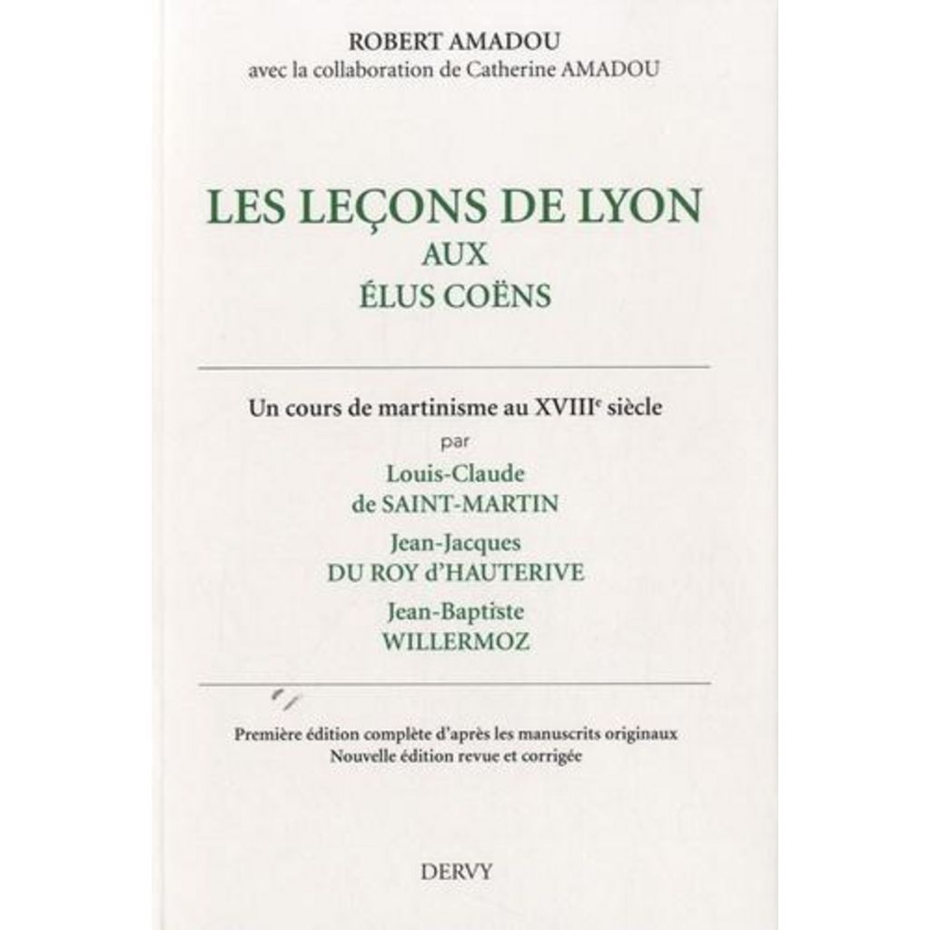 A Lyon, pendant trois ans, de 1774 à 1776, trois initiés du premier rang ont enseigné à leurs cadets dans l'Ordre des chevaliers maçons élus coëns de l'univers la théosophie et la théurgie que le grand souverain Martines de Pasqually y avait déposées. Cette doctrine de la réintégration sera cultivée librement par Louis-Claude de Saint-Martin, l'illustre Philosophe inconnu, et par ses disciples dont beaucoup, depuis cent ans, se sont associés en ordres martinistes . la même doctrine inspire encore le rite écossais rectifié de la franc-maçonnerie, tel que Jean-Baptiste Willermoz le réorganisa. Or, Saint-Martin et Willermoz composent avec Du Roy d'Hauterive, troisième successeur de Martines de Pasqually, le trio des répétiteurs de ce cours d'illuminisme au siècle des Lumières, toujours actuel. Pour la première fois, Les Leçons de Lyon sont publiées ici intégralement d'après les manuscrits originaux, notamment celui de Saint-Martin. Une ample étude liminaire retrace l'histoire et éclaircit la pensée, au coeur du martinisme.