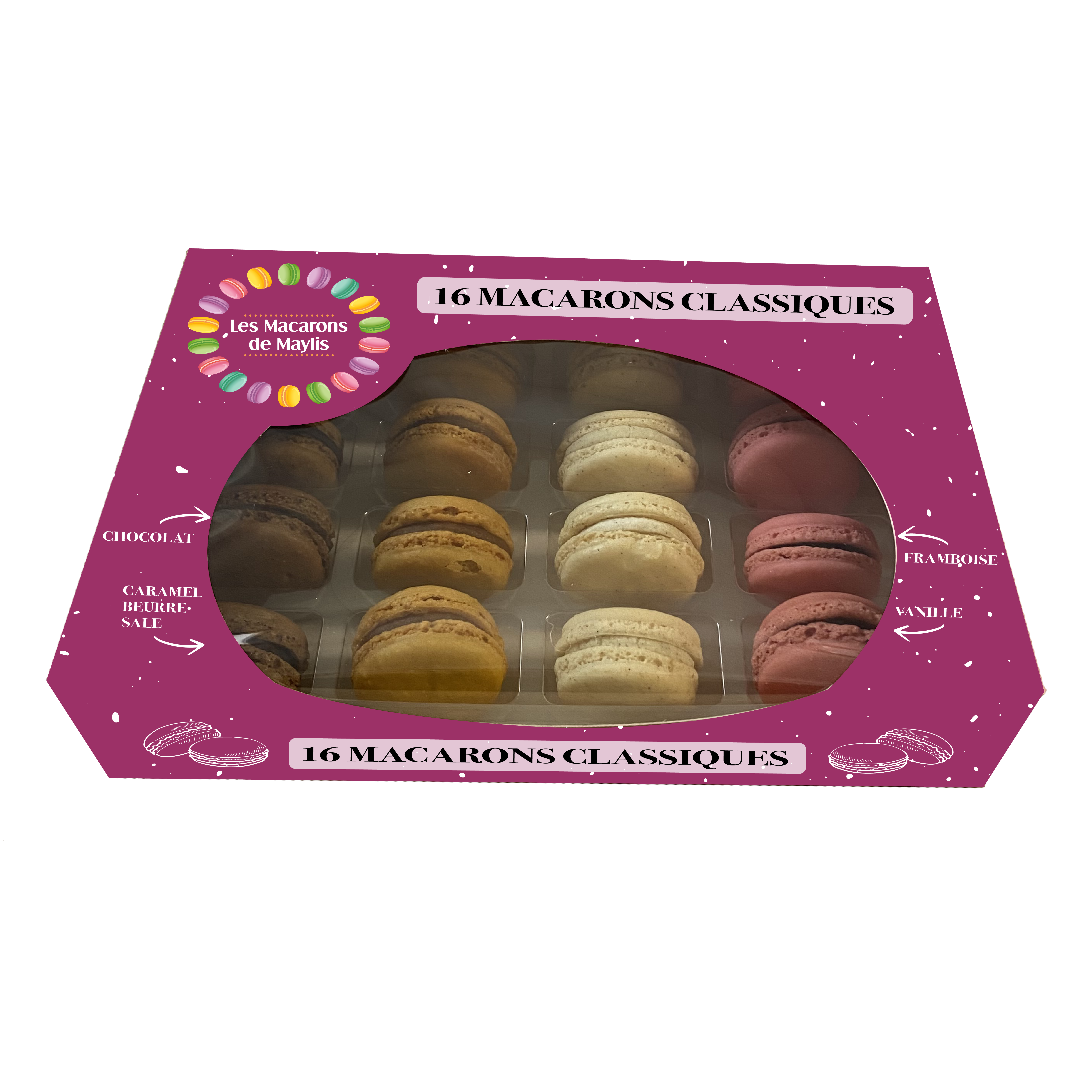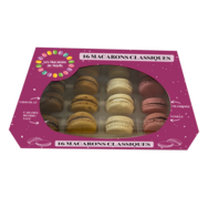Macarons classiques parfums chocolat - framboise - vanille - caramel beurre salé
