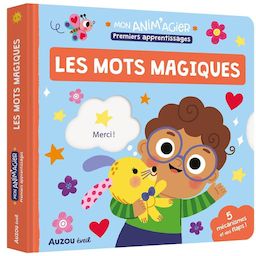 Un livre pour apprendre la politesse et le vivre-ensemble, en lien avec le quotidien de l'enfant pour une reconnaissance immédiate. Une thématique inédite, qui parlera à tous les parents, pour apprendre les mots magiques tout en douceur : - bonjour / au revoir - s'il te plaît / merci - je m'excuse / pardon - bonne nuit / je t'aime On retrouve toujours 5 mécanismes solides, logiques et adaptés aux petites mains, faciles à manipuler, et une double finale qui récapitule les apprentissages de façon ludique, grâce à un jeu de flaps.