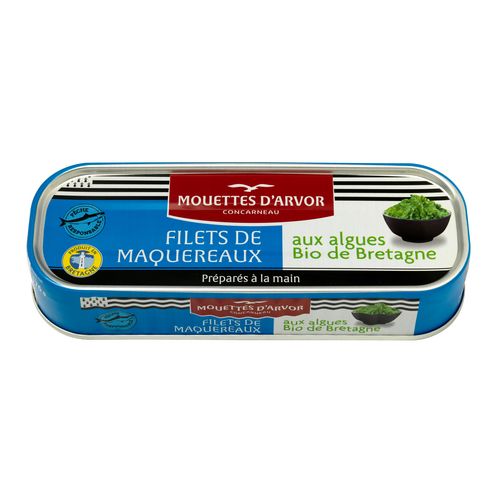 Préparés à l'ancienne à Concarneau, ces filets de maquereaux sont délicieusement parfumés par la saveur délicate et iodée des algues de Bretagne Bio.