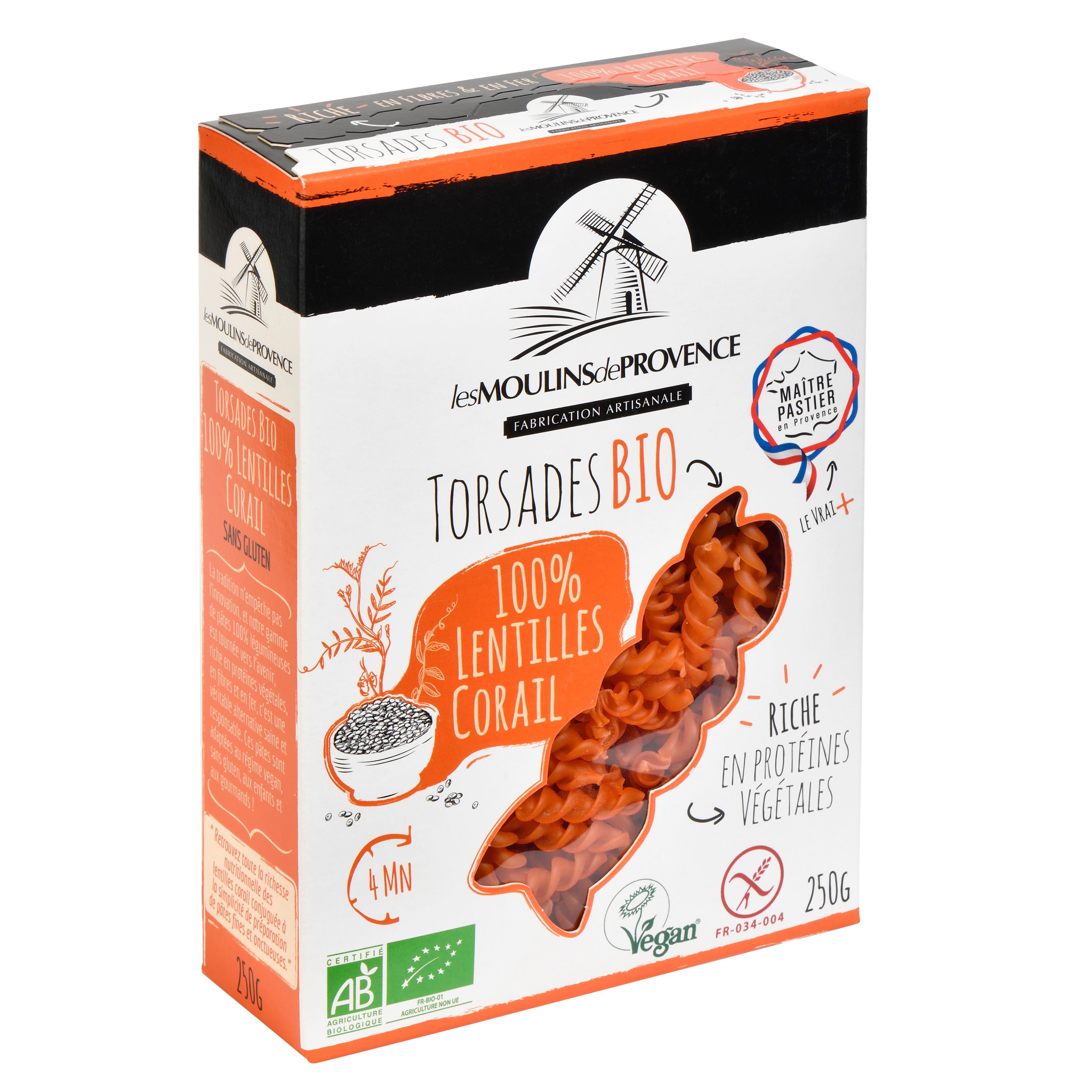 Torsades bio vegan aux lentilles corail sans gluten cuisson rapide