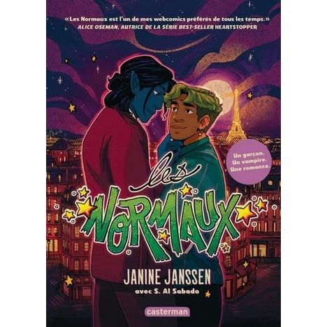 Un roman graphique young adult exceptionnel. Une ode à l'amour et à la différence ! Sébastien a fui sa famille humaine pour emménager dans un Paris surnaturel où il compte bien apprendre la magie et oublier ses problèmes. Un soir, dans un bar, il rencontre un vampire hyper sexy et, sans trop réfléchir, échange avec lui un baiser passionné. Il interrompt pourtant leur étreinte et disparaît : il a déjà bien assez de soucis comme ça pour s'engager dans une relation... Mais le lendemain matin, il croit défaillir en sortant de chez lui : son voisin de palier n'est autre qu'Elia, son séduisant vampire ! Les émois ne font que commencer... Les Normaux est l'un de mes webcomics préférés de tous les temps. Alice Oseman.