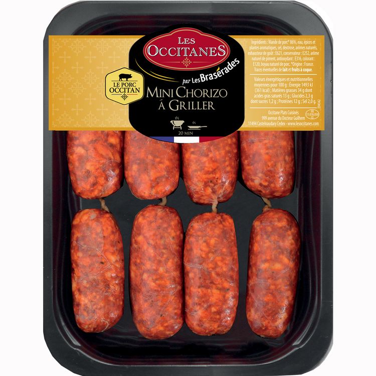 Ingrédients : Viande et gras de porc* 89%, épices et plantes aromatiques (paprika fumé, paprika, ail, coriandre, origan, poivre, piment), correcteur d'acidité : E326, eau, sel, dextrose, arômes naturels, betterave rouge, antioxydant : E301, boyau naturel de porc. *origine : FranceTraces éventuelles de lait, fruits à coque et œuf.